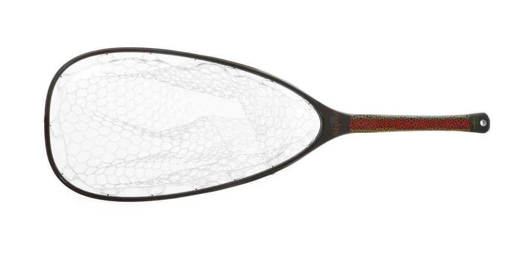 The Nomad Emerger net was designed to work with both packs and vests. The longer handle can easily tuck behind a pack but is not too long to hang off the back of a vest. This limited edition features a handled inspired by the wild Redband trout of the western US.